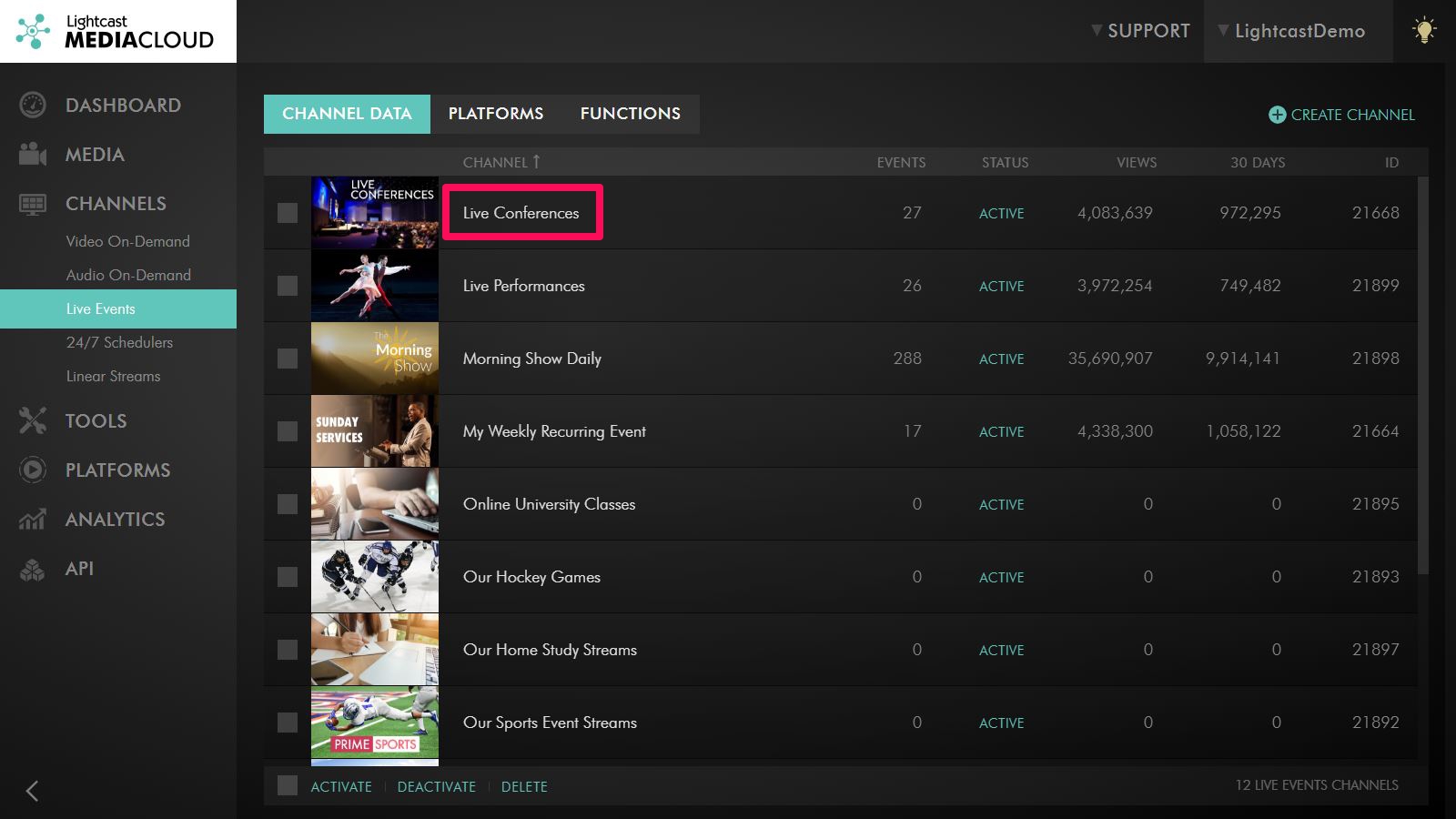 Step 3: Click on the name of the channel you want to send your stream through