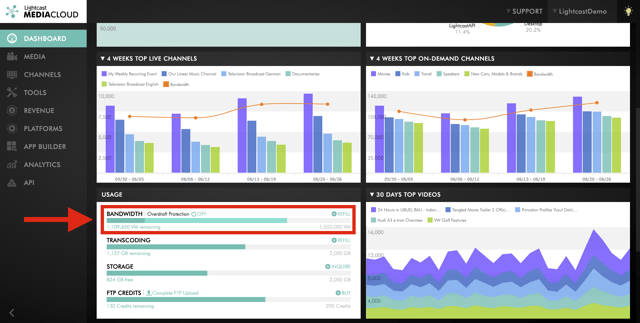 👉 Overdraft Protection: It allows you to automatically refill your Video Minutes Balance in increments selected by you, whenever your Video Minute Balance reaches a certain level, that you can specify. Video Minutes purchased via the Overdraft Protection feature are “eternal” minutes - they never “flush out”, they never expire - and serve as a safety net for any unexpected overage (through the spiking of viewership during a certain live event, or the viral distribution of an on-demand video for instance). Watch how to turn on Overdraft Protection!